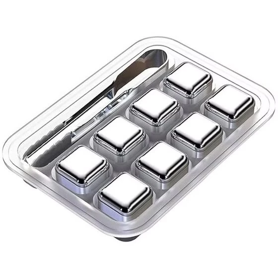 تیکه یخ مکعبی فلزی یک محصول عالی برای خنک کردن و خنک نگه داشتن نوشیدنی شما که هیچ‌ طعم و بوی نا مطلوبی به نوشیدنی اضافه نمیکند